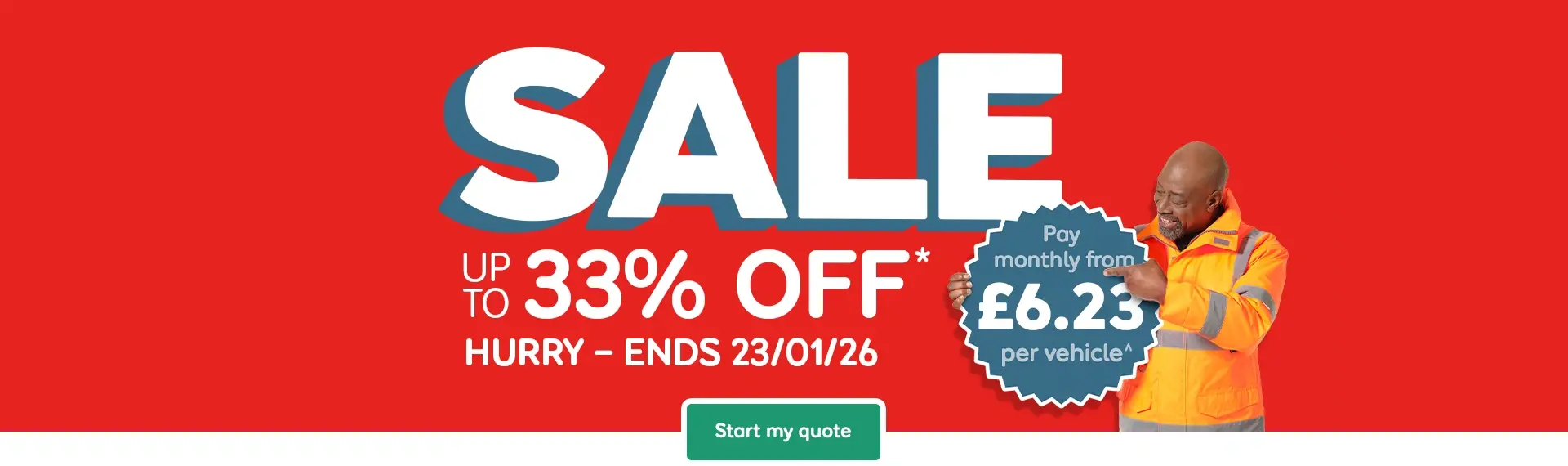 *Applies to new car/taxi Roadside, Recovery and At Home or Van Total cover for 1-24 vehicle fleets. Max 33% on car or van fleets 1-5. Max 20% on taxi fleets 1-5. Excludes minibuses. Ends 23/01/26, 10am. ^£6.23 a month for Roadside, Recovery & At Home, fleets of 5.